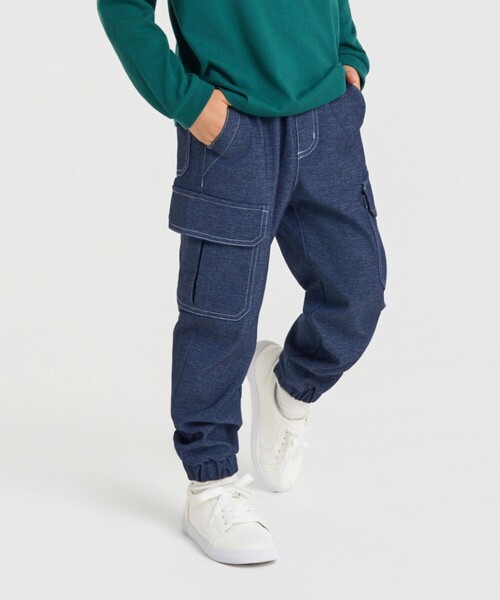 《デザイン》 カーゴポケットがポイントのジョガーパンツです。 動きやすいように、ヒップと渡り部分に ゆとりを持たせながら裾をゴムで絞ることで 足回りのもたつきを防ぎ、すっきりと見えるシルエットにしています。 上品なライトグレーの配色ステッチがアクセントになっています。 お子様自身でも着脱しやすいオールゴム仕様で内側に調整口があります。 ポケットが前後と脇にもあり、実用性も兼ねた通学着にも使いやすい1枚です。 男の子女の子問わず、トレンド感のある着こなしをお楽しみ頂けます。 ベビー(商品番号:23-52PM53-205)まで展開していますので、 お揃いでお楽しみ頂けます。 《素材》 毛羽立ちが少なく微光沢の表面感で、クリアな印象の素材です。 キックバックにも優れ、程よい肉感の 色落ちの心配が無いキレイ目なデニム調素材です。 ご自宅で洗濯機洗い可能です。 ※画像の商品はサンプルとなりますので実際の商品と仕様、加工、サイズが若干異なる場合がございます。 ※こちらの商品はFIVE FOXes独自の採寸方法となっています。 本サイトのサイズガイドと採寸方法が異なる場合がありますのでご了承ください。