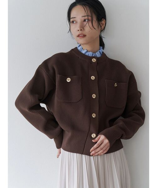 甘さときちんと感を両立する、フリル衿付き金釦カーディガン。 立体感のある片畔編みが魅力の、ポリエステル100%ニットカーディガン。上品な艶感のゴールドボタンと、取り外し可能なフリル衿で、クラシカルなムードに仕上げました。衿を外せばシンプルなクルーネックカーデとしても着用可能。きちんと感がありながらも着心地は軽やかで、 オンオフ問わず活躍する一着です。スカートにもパンツにも合わせやすいコンパクトな着丈も嬉しいポイント。 3色展開で、ブラック×オフホワイトの衿、ネイビー×サックスブルー衿、ブラウン×サックスブルー衿でご用意しております。