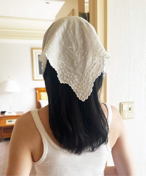 【25AW COLLECTION】 EDIT. FOR LULU前回即完売の大人気商品が再入荷!vintageのスカーフを参考に柄の大きさや凹凸感にこだわって制作しました。素材は柔らかくて、VINTAGEライクなヘンプ素材を。角に「L」の刺繍が施してあるところがデザインポイントです。サイズ感は様々なアレンジができるようにあえて長方形の形にしました。正方形だと綺麗になりすぎるのですが、長方形にすることで折り畳んだときにスカラップのデザインにランダム感がでてこなれて見えます。バンダナ、ビスチェ、スカーフとして、またインテリアとしても。様々な用途でお使いいただけるpetite LULUらしいどこか優しく懐かしさのある、スカーフです。※取り扱いについては、商品についている品質表示でご確認ください。※照明の関係により、実際よりも色味が違って見える場合があります。またパソコン・スマートフォンなどの環境により、若干製品と画像のカラーが異なる場合もございます。※商品の色味は、商品アップ画像をご参照ください。<気になったアイテムは『お気に入り』がおすすめです!>お気に入り登録した商品の再入荷・在庫情報・値下げなどの通知を受け取ることができます。本体:手洗い可能