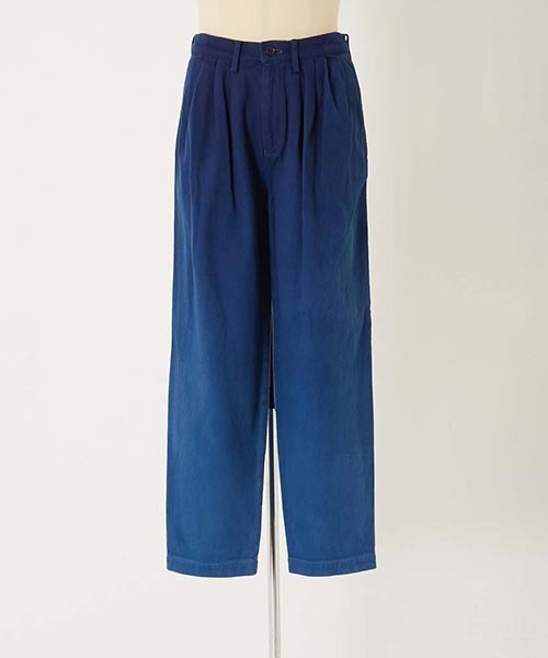 JAPAN DORAKUイベントを記念し制作したスペシャルコレクションです。JAPAN DORAKUとは、「人とおカネの循環で明るい未来を創る」をテーマに日本の伝統と文化の継承を軸として、社会活動を第一義に立ち上がったプロジェクトです。聖林公司もこのプロジェクトに共鳴し、オリジナルブランドでスペシャルコレクションを作成しました。【デザイン】同生地のカバーオールとセットアップで合わせられるパンツです。【素材】もともとアパレル用としてではなく道着などのために作られた素材。頑丈ですが柔らかくシルエットに丸みをもたらします。ブランドの数ある刺し子シリーズの中でも一番わかりやすい刺し子素材とも言えます。有害な薬剤や多量の水を使わないオゾン加工でもともとの生成色から白色に脱色し、さらに着用時についた汚れを落としやすくするテフロン加工を施しました。その上に本藍染めを施しています。【ディテール・シルエット】腰回りをやや緩く、裾にかけて軽くテーパードしたシルエット。フロントに入れたタックが視覚的ポイントにもなっています。ポケットの深さなど日常の使いやすさにも気を配っています。【BLUE BLUE JAPAN REWORK】「BLUE BLUE JAPAN」の基盤となるインディゴ染めや天然染めなどの手仕事。その深い色合いと持ち主によって育てられ変化していく様子に魅了され、長きに渡り様々な技術や手法を用いたアイテムを展開してきました。REWORKシリーズは完成された製品にさらに加工を施し、新たな製品へと作り替えたスペシャルアイテムです。BLUE BLUE JAPAN手作業で縫い合わせた、温もりを感じられる藍を中心としたモノ作りからはじまりました。着心地が良く長年着用していただけるものを日本の伝統技法である本藍染めを中心に、四季を感じさせる色や素材を使用し「MADE IN JAPAN」にこだわりながら作っています。