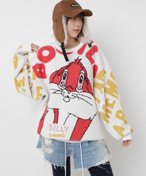 ボディー全体に編み柄が配置されたインパクトのあるセーター■POINT■B級でキッチュなキャラを、モールヤーン(短い毛足のある糸)で編み柄にしました。ボディー全体的に編み柄が配置された、手の込んだインパクトのあるセーターになります。プリントアイテムとは異なる、深みのある表情がおすすめの1枚です。■COLOR■オフホワイト・グレー生地感:やや厚い・やわらかい透け感:透けない伸縮性:あり裏地:なし----------------------------------------------------------------------◆◆お気に入り登録しておすすめ情報をゲットしよう◆◆【商品のお気に入り登録】再入荷、残り1点、セール、タイムセール、クーポンなど、いち早く受け取ることができます。【ショップ・ブランドのお気に入り登録】新商品、予約商品、再入荷、ショップのおすすめトピックスなど、ショップ・ブランドの最新情報を受け取ることができます。----------------------------------------------------------------------※商品についている品質表示タグやアテンションタグを必ずご確認の上、着用、またはお取り扱い下さい。※画像の商品はサンプルです。実際の商品と仕様、加工、サイズが若干異なる場合がございます。※撮影場所により、光の当たり具合で色味が異なって見える場合がございます。商品写真はできる限り実物の色に近づけるようにしておりますが、実際の商品と色味が異なる場合がございます。カラーは商品の掛け画像をご参照下さい。