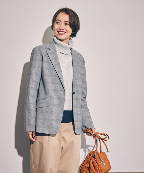 《デザイン》シンプルながら旬な抜け感を演出するボックスシルエットジャケット。シングル1ボタンのベーシックなデザインを、肩を落としたドロップショルダーで今っぽくアレンジしました。裏地付きで秋口から春先まで活躍できるライトアウターとしておすすめの一枚です。袖口は重ねスリット仕様なので、折り返してニュアンスを出して着ることが出来ます。同素材のパンツ(商品番号:12-09PM09-205)と合わせてセットアップとして着るのがオススメです。柄のジャケットに無地のパンツ、または、無地のジャケットに柄のパンツのミックスでの着方もオススメです。お仕事着としても使いやすく、オフィスカジュアルにおすすめのアイテムです。《素材》ポリエステルレーヨンのストレッチツイル素材を先染めで無地とグレンチェックに仕上げました。柔らかく、程よい肉感のあるストレッチ素材。ラフなセットアップに最適です。《セットアップ対応》同素材のパンツ(商品番号:12-09PM09-205)とセットアップとしてお召しいただけます。《セットアップ対応アイテム》・パンツ98730842(ZOZO)12-09PM09-205(店舗)……………………透け感:なし厚さ:中肉伸縮性:なし光沢感:なし裏地:あり洗濯方法:ドライクリーニング……………………