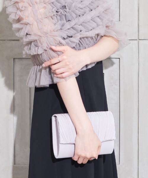 ***結婚式・二次会・謝恩会・成人式・パーティー等のフォーマルシーンにオススメ*** 上品な光沢感と繊細なプリーツデザインがポイントのクラッチバッグ。 フロントのやわらかなカーブが、手元をさりげなく華やかに見せてくれます。 内装ポケットは通常のポケットに加えてマチ付きスペースがあり、 リップなどの小物をすっきり整理できる設計に。 コンパクトな見た目ながら、必要なものがしっかり収まる嬉しいサイズ感。 華やかな場に映えるデザインと、使いやすさを兼ね備えた一品です。"