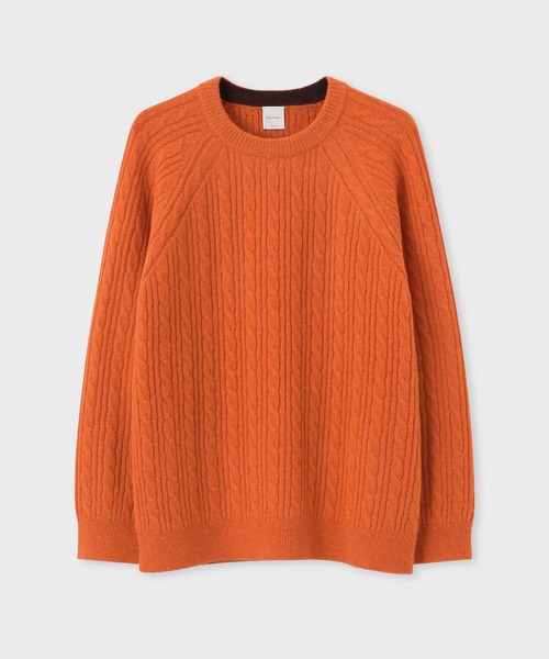 ■デザイン■ 発色の良いオレンジカラーが目を引く、ケーブル編みのクルーネックニット。 ラグランスリーブ仕様で、肩まわりに自然なフィット感と動きやすさをプラスしました。 ネックリブ裏のブラウンがさりげないアクセントになった、秋冬のスタイリングに映える1着です。 ■素材■ アルパカ混のバルキーな素材感が、暖かみとふっくらとした表情を演出。 ________________________ [お買い物をお楽しみ頂くために] □商品のお気に入り登録 完売カラーの再入荷通知やラスト1点の通知など、商品情報をお届けします。 □ショップ・ブランドのお気に入り登録 新商品や再入荷など、いち早くブランドの最新情報をお届けします。 ________________________