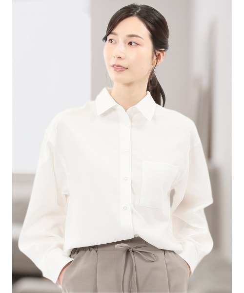 エムエフエディトリアルレディース/m.f.editorial:Womenストレッチ バックタック レギュラーカラー 長袖ブラウス ■素材特徴 ワッシャー加工でソフトな肌触りに仕上げたポリエステル生地です。コットンのような優しい風合い、シルエットをキープする程良いハリ感、シワになりにくい、薄手で軽い着心地が魅力です。 ■機能 【ストレッチ】伸縮性に優れ動きやすく、長時間の着用もストレスフリー。 【マシンウォッシャブル】洗濯機で洗えます。(要ネット・弱水流) ■デザイン シンプルながらも着映えする、レギュラーカラーの長袖ブラウスです。スタンダードなシャツをベースに、袖口やヨーク下に入れたタックで柔らかな印象に仕上げています。肩を落としたドロップショルダー、前後差のある着丈、背中のオリジナルロゴ(m.f.)入りゴールドプレートがポイント。 ■シルエット 身体のラインを拾わないゆったりとしたシルエットです。気になる背中やウエストのラインを隠しつつお洒落に体型カバーが可能です。 ■コーディネート フロントインすると、抜け感のあるこなれた印象に仕上がります。半袖ニットのインナーやシャツアウターとしてサラッと羽織るのもおすすめ。キチンと感があるので、毎日の通勤から普段使いまでオンオフ兼用で活躍してくれます。 フィット感:ゆったり シーズン:秋冬 展開カラー:白(ホワイト)・黒(ブラック)・ピンク・サックス *アテンションタグ・洗濯ネームを御確認の上、着用又は取り扱い下さい。*光の当たる場所や高温多湿になる場所での保管は避けて下さい。 *使用の有無に関わらず、経年劣化は進行いたしますのでご了承下さい。*閲覧デバイス・環境により質感・色味に誤差が生じる場合がございます。* ZOZOTOWN お買い物ガイド・商品のお気に入り登録ハートマークをクリックしましょう!完売カラーの再入荷通知や、ラスト1点の通知、セールの通知をお知らせします。・ブランドのお気に入り登録新商品や再入荷など、いち早くお得な情報を受け取ることができます。・最短で翌日お届け商品をカートに入れた後、注文内容の確認ページで「即日配送」を選択していただければ、最短でご注文した翌日にお届け致します。(ZOZOTOWNお買いものガイドをご参照ください)
