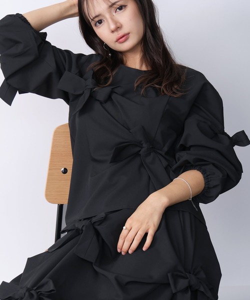 トレンドのリボンデザイン ランダムなリボンがアクセントのプルオーバータイプのブラウス 透け感の心配がないさらっとした生地を採用。 コーデいらずで1枚で決まる主役トップスです。 リボンはフロントのみで後ろはすっきりしています。 袖口はゴム入りでプッシュアップしやすい仕様になっています。 同デザインのスカートとワンピース風にセットアップでの着用も可能です。 【詳細情報】 厚み:□薄手 ■ふつう □厚手 透け感: ■なし □あり 光沢感: ■なし □あり 伸縮性: ■なし □あり 裏地: ■なし □あり ポケット:■なし □あり ※撮影場所や明るさにより 実際の商品と色味が若干異なる場合がございます。 ☆商品のお気に入り♡登録を押せば ”再入荷通知”や”残りわずか通知” 値下げのお知らせが届きます! お気に入りのブランド登録していただければ新商品入荷のお知らせも届きますので 是非登録してみて下さい。