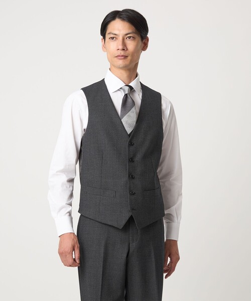 <A+(エープラス)>は、快適な素材を活かし、美しいパターンで仕立てた着心地のいいコレクション。高い利便性と汎用性で、日常のさまざまなシーンを快適に彩ります。■デザイン・すっきりとしたスリムシルエット・シングル5ボタン・腰ポケット付き・アジャスターなし・秋冬シーズンに安心して着用できる総裏仕様■素材・ポリエステル×毛×ポリウレタンの杢感のあるバーズアイ・クリアな表面仕上げにより長いシーズンで着用が可能・ご自宅ケアができるマシンウォッシャブル機能■コーディネート同素材セットアップジャケット、パンツとの3ピーススーツスタイルがおすすめです。オケージョンシーンはもちろん、会議や商談にも対応できる落ち着いた風格が魅力。ベスト単品で他のジャケットやスーツに合わせても素敵です。・品番:31141021742 同素材セットアップパンツ・品番:31221021742 同素材セットアップジャケット============================裏地:総裏仕様透け感:なし伸縮:あり光沢感:なしケア方法:洗濯機洗い可============================<A+(エープラス)>快適さと機能性を備えた、汎用性の高いグリーンレーベル リラクシングのドレスライン。ビジネスからフォーマルまで、品よく映えるセットアップを中心に、季節に応じた多彩なアイテムを展開。【注意事項】※商品に「取り扱い上の注意書き」、「洗濯表示」がございます場合は、使用前に必ずご確認ください。※商品画像は、光の当たり具合やパソコンなどの閲覧環境により、実際の色味と異なって見える場合がございます。あらかじめご了承ください。※商品の色味の目安は、商品単体の画像をご参照ください。※画像の商品はサンプルです。実際の商品と色味、仕様、加工、サイズ、素材等が若干異なる場合がございます。店舗へお問い合わせの際は、全国のgreen label relaxing各店舗まで下記の品名/品番をお申し付けください。品名:A+TWPUバーズアイ 5B SLMベスト 品番:31231021742