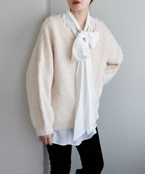 1枚で着映え。毛足の長いシャギーニットプルオーバー。 ■Point ・ふんわりとした質感が魅力のシャギーニット。 ・ネックは程よい開きを持たせ、どの角度から見ても洗練された印象に。 ・ゆとりを持たせたシルエットと絶妙な丈感により抜け感のあるスタイリングが完成します。 ・スタイリングにやわらかなニュアンス感を演出してくれる一着です。 ■Coordinate ・ダブルタックワイドパンツ ・ポンチIラインスカート ・ニュアンスマーメイドスカート - - - - - - - - - - - - - - - 透け感:なし 裏地:なし 伸縮性:ややあり 光沢感:なし 生地の厚さ:普通 - - - - - - - - - - - - - - - 【注意事項】 ※撮影環境により、光の当たり具合で色味が違って見える場合があります。あらかじめご了承下さい。 ※画像はサンプルの為、実際にお届けする商品と仕様が異なる場合がございます。 ※クリーニングネットをご使用下さい。 ※石油系のドライクリーニングをしてください。 ※この製品は素材の特性上引っ掛かり易くなっています。ご着用の際は充分ご注意ください。 ※ご着用の際はベルト、バッグなどの引っ掛かりにご注意ください。 ※素材の特性上、毛玉や毛羽立ちが発生することがあります。ご注意ください。 ※濡れたまま放置しますと色泣きしたり、白物に色移りすることがありますのでご注意ください。 ■「商品のお気に入り登録」で ハートマークをクリックし、お好きなカラーを選んでお気に入りに登録すると 入荷情報や残り1点の通知、完売カラーの再入荷、セール情報などを受け取ることができます。 登録して頂いた商品だけが対象となる、あなただけのタイムセールが開催されることも! ■「ブランドのお気に入り登録」で 新商品や再入荷など、いち早くSHENERYのお得な情報を 受け取ることができますので、ご登録をおすすめします!