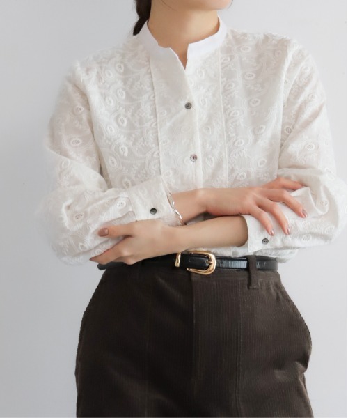 【NOMBRE IMPAIR ノンブルアンペール】2025 Winter Collection ■ペイズリー刺繍が華やぐ上品ブラウス全面に施されたペイズリー刺繍が印象的な、コットン100%のスキッパーブラウス。ほんのり透け感のある風合いが、上品で抜け感のある着こなしを叶えます。定番のニットカーディガンを合わせるだけで華やかなスタイリングに◎寒さの深まる季節には、タートルネックを重ねてこなれ感のあるレイヤードを楽しめます。■Coordinateハイウエストのパンツにタックインすれば、程よくきちんと感のある着こなしに。ジャケットやカーディガンを羽織ってオフィスカジュアルにもぴったり。オンオフ問わずに活躍するので、ロングシーズン重宝する1枚です。洗濯:洗濯機使用可※画像の商品はサンプルです。実際の商品と色味、仕様、サイズ等が若干異なる場合がございます。※工場の生産の都合上、納期が変更になる場合がございます。発送日の前後については予めご了承ください。※こちらの商品はセール対象外です。