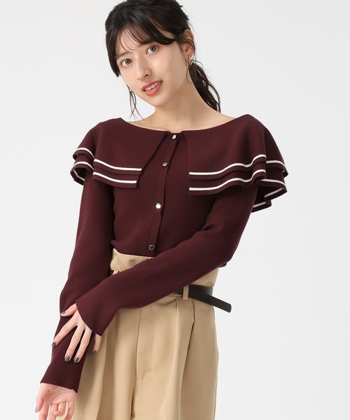 ◆◇◆2025 Autumn Collection◇◆◇ふんわりと広がるケープカラーが女性らしい印象のニットトップス。ケープ端の配色ラインと飾り前立のゴールドボタンが全体を引き締めてメリハリを与えてくれます。前後2WAYで着用可能のため、着こなしの幅もグッと広がります。オン・オフとも活躍してくれるアイテムです。★《お気に入り登録》でお得な情報をGET★・「商品のお気に入り登録」で再入荷通知やラスト1の通知、セールやクーポンの通知も受け取ることができます!→ハートマークをクリック・「ブランドのお気に入り登録」で新商品や再入荷など、お得な情報を受け取ることができます!