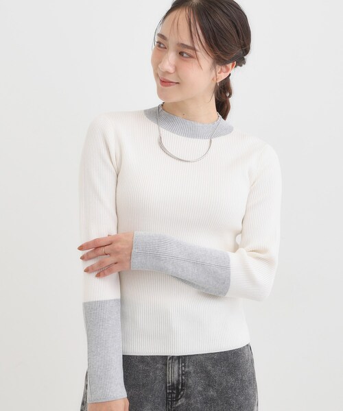【デザイン】配色が効いたプチハイネックのニットインナー。着やすいリブ編みでベーシックな素材感ながらも、配色が今年らしい1枚。【スタイリング】1枚で着るのはもちろん、カーディガンやジャンドレなどのインナーとしても大活躍します。メリハリの効いた配色で、1枚でもサマになります。【お客様からいただいたコメント】・伸縮性もよくとても着やすいです。 チクチクもしないし着心地も良いです。 (身長:160cm 体型:ふっくら グレーのLサイズ購入)・細身ですっきりみえます。 デニムやワイドパンツなどに合わせて着用しようと思っています。 (身長:147cm 体型:やせ型 グレーのSサイズ購入)・薄手で割とフィットするニットが欲しかったので、カラーの切り替えも好みで良かったです。 (身長:157cm 体型:普通 グレーのMサイズ購入)・色違いで全部母とシェアするために購入。 丈は短めなので、ジャンパースカートや、スカートのトップスとして使っています。 (身長:158cm 体型:普通 ブルーのLサイズ購入) とのお声を頂戴しております。【素材】もちもちとしたタッチが特徴のリブ編みニット。肌触りが良く、ベーシックに着られる素材感なので色違いで持っていたいアイテムです。ご自宅でお洗濯していただけます。※製品寸法は平置きのスペックでございます。こちらの商品は伸縮性があります。※照明の関係により、実際よりも色味が違って見える場合があります。また、パソコン・スマートフォンなどの環境により、若干製品と画像のカラーが異なる場合もございます。モデル情報:身長163cm B81 W59 H88 着用サイズ:02(M)店舗へのお問い合わせ商品番号:256-14001●製品寸法:01(S):着丈53cm B66cm 袖丈59cm 肩幅32cm02(M):着丈55cm B70cm 袖丈60cm 肩幅33cm03(L):着丈57cm B74cm 袖丈61cm 肩幅34cm04(LL):着丈59cm B78cm 袖丈62cm 肩幅35cm備考: