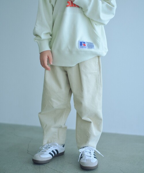 人気ボトムに「コーデュロイ」素材が登場■デザイン定番のカーブパンツが「コーデュロイ」で登場。凸凹感のある素材と、たっぷりととったタック、太めのシルエットが可愛いです。100cmから160cmまでの幅広いサイズ対応が可能♪兄弟姉妹、お友達とペア、リンクコーデ、お揃いコーディネートを楽しめるアイテムです。■素材太めのコーデュロイ素材やや伸びがある■コーディネート存在感のあるパンツなので、シンプルなロンTや裏毛のパーカーなど、それだけでも決まる万能パンツです。============================裏地:なし透け感:なし伸縮:ややあり光沢感:なし機能性:ストレッチケア方法:洗濯機洗い可============================【注意事項】※商品に「取り扱い上の注意書き」、「洗濯表示」がございます場合は、使用前に必ずご確認ください。※商品画像は、光の当たり具合やパソコンなどの閲覧環境により、実際の色味と異なって見える場合がございます。あらかじめご了承ください。※商品の色味の目安は、商品単体の画像をご参照ください。・160cmはWEB限定サイズです。店舗へお問い合わせの際は、全国のgreen label relaxing各店舗まで下記の品名/品番をお申し付けください。品名:◎◆コーデュロイカーブPT 品番:38141000005