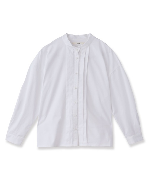 パールボタンが華やかなスタンドシャツ スタンドカラーの立体的なデザインが首元をすっきり見せてくれる、上品なシャツです。 フロントのタックとニームのアイコンであるパールボタンが華やかさを添え、1枚でコーディネートの主役になります。 万能な白ムジ、シャンブレームジ、秋らしいブラックウォッチの3色展開で、長いシーズン活躍する1枚です。 コーディネート 【テーパードパンツ】 フロントタックの華やかさを活かすため、シンプルなテーパードパンツと合わせて、オフィスやきれいめカジュアルに。 【カーディガン】 パールボタンの華やかさを引き立てるように、シンプルなカーディガンを羽織ってクラシックな雰囲気に。 シャツのタックが程よく覗き、上品なレイヤードスタイルです。 ※照明の関係により、屋外で撮影した写真の商品は、実際よりも色味が違って見える場合があります。またパソコン・スマートフォンなどの環境により、若干製品と画像のカラーが異なる場合もございます。予めご了承ください。実際の商品の色味は、スタジオ撮影の画像をご参照下さい。 ※商品画像はサンプルのため、色味やサイズ等の仕様に変更がある場合がございますので、予めご了承ください。 アイテム詳細 素材:綿100% サイズ: 【F】 着丈(C.B.):58cm,身巾:58cm,肩巾:56cm,衿巾:3cm,袖巾:21.5cm,袖丈:48cm,裄丈:76cm,袖口巾:10.5cm,カフス巾:4.5cm,裾巾:61cm ==================== 裏地:なし 透け感:なし 生地の伸び:なし 光沢感:なし ケア方法:手洗い可 ==================== 生産国:中国 品番:52531002 ※取り扱い・ケア方法については、商品についている品質表示でご確認ください。