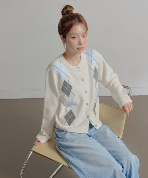 # pointo韓国ファッション / 韓国トレンドスタイルoアーガイル柄がデザインポイントo高級感のあるシェルボタンoこなれ感のある絶妙なシルエット# colorNAVY、GRAY、IVORY# details透け感 : なし厚み : 普通季節感 : 秋、冬伸縮性 : あり【UNE MANSION】韓国で生まれた“UNE MANSION""フランス語で「1つの」という意味がある「UNE」、ファッションに対しての様々な考えやアイテム達が住んでいる「1つのMANSION(マンション)」トレンドを発信し続けるファッションコミュニティーとなり、たくさんのアイテムとスタイルが集まったブランドです。気軽に韓国ファッションのトレンドを取り入れることができるアイテムを展開しお客様が""これ1枚でかわいい""と感じていただけるようにデザインやシルエットにこだわっています。※ご覧のモニター環境や撮影環境により実際の商品と多少色味が異なって見える場合がございます。※サイズの測定方法によって1~3cm程度の誤差が生じることがございます。※全ての商品の最初の洗濯はドライクリーニングをお勧めし、乾燥機のご使用はご遠慮ください。※洗濯不注意による商品の損傷の交換/払い戻しのご対応は難しくなっております。※濃いカラーの商品は素材の特性上、汗や水による色移りの可能性がございます。明るい色の下着やバッグ、その他のアイテムとの摩擦、色移りにご注意ください。もっとお買い物を楽しむために!商品のお気に入り登録お気に入りの商品やサイズ・カラーまで、お気に入りの登録をしていただきますと、そのアイテムのセールの通知、ラスト1点になった時の通知や、完売しても再入荷通知を受け取ることができます!ブランドのお気に入り登録新商品の発売や再入荷、タイムセールやクーポン発行のお知らせなど、最新の韓国ファッションを発信している韓国ブランドUNE MANSIONがお届けするお得な情報を受け取ることができます!