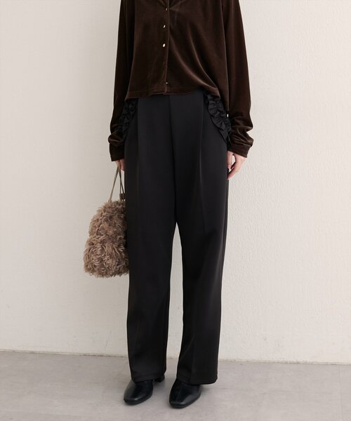 【2025AW natural couture】 【WEB限定】ポケットフリルタックパンツ ■Design 一目見た瞬間から心を奪われる、大人の遊び心あふれるデザイン。 ポケット部分にあしらわれた繊細なフリルが、シンプルなパンツに華やかなアクセントを添えます。 甘すぎない絶妙なバランスで、どんなトップスとも相性抜群。 深めのタックが、気になる腰回りをさりげなくカバーしつつ、美しいシルエットを演出します。 カジュアルからきれいめまで、幅広いスタイリングが楽しめる万能アイテムです。 ■Styling シンプルなニットと合わせて、フリルを主役にした上品な着こなしに。 ブラウスと合わせて、オフィスにもぴったりのきちんとスタイルもおすすめです。 Tシャツとスニーカーを合わせて、カジュアルダウンすれば、こなれ感のある大人カジュアルが完成します。 足元はパンプスやブーツはもちろん、サンダルとも相性抜群。 合わせるアイテムによって、様々な表情を見せてくれるので、コーディネートの幅が広がります。 ■Fabric 程よい伸縮性があり、動きやすく快適な着心地。 ================== 透け感:なし 裏地:なし 伸縮性:ややあり 光沢感:なし ポケット:あり 生地感:滑らかな生地感 ================== ※着用、お取り扱いの際は、商品に付いている品質表示とアテンションタグを必ずご確認ください。 【お気に入り登録でお得な情報がいっぱい】 ・「商品のお気に入り登録」で再入荷通知や、ラスト1点の通知、セール通知をいち早く受け取ることができます。 ・「ブランドのお気に入り登録」で新商品や再入荷など、お得な情報を受け取ることができます! ※店舗の入荷時期は商品によって異なります。 店頭の在庫状況につきましては各店舗にてお問い合わせください。 ※撮影時の光の関係で、画面上の画像と実際のお色とでは若干の色差が生じる可能性がございます。 また、ご覧いただいているモニター画面や、お使いのブラウザによっても、お色の違いがございますことをあらかじめご了承くださいませ。 20250926 2025AW_natu 25AW