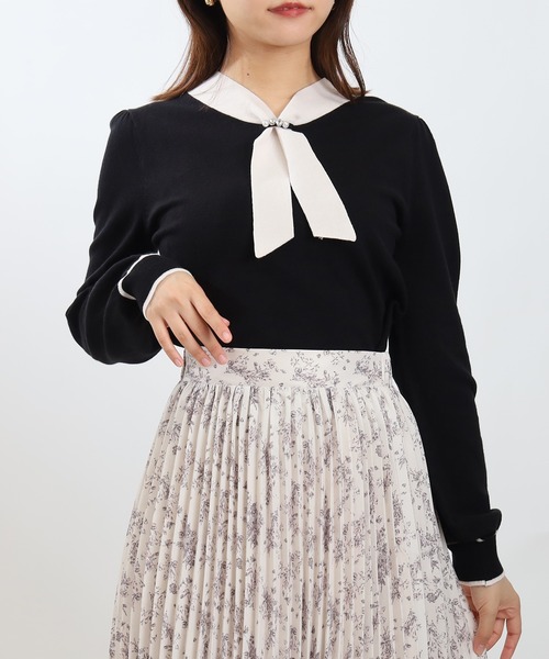【ASTORIA ODIER人気のデザインニット】 配色ラインが目を惹くボウタイニット♪ ボウタイと袖の配色が全体を引き締めつつ、きちんと見えするポイントに◎ 連なるパールビジューがアクセントとなり、さり気ない華やかさを演出します。 滑らかで着心地の良い素材を使用し、デイリー使いしやすい一枚です。 また、ジャケット合わせやジャンスカのインナーとしてもおすすめです♪ 【ASTORIA ODIER(アストリア オディール)】 「女性の”はたらく”が、もっと楽しくなる服」 なりたい自分を叶えるために毎日を大切にしている女性の気持ちに寄り添い、はたらく日も休みの日も、手に入れられる憧れをお客さまと一緒につくっていく。 自分のキレイがみつかるフェミニンカジュアルスタイルを提案します。 ◆《お気に入り登録》でお得な情報を◆ ・「商品のお気に入り登録」 再入荷、ラスト1点、セール情報などの通知も受け取ることができます。 ・「ブランドのお気に入り登録」 新商品や再入荷など、ブランドのお得な情報を受け取ることができます。