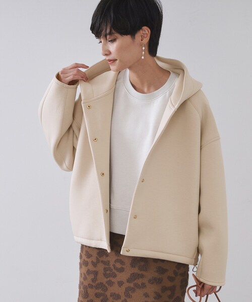 肌寒くなる季節にぴったりなダンボール素材のフーディーアウターが登場。【デザイン】・少し丸みのあるゆったりシルエットのダンボールフーディーアウターです。・前後差のある着丈バランスと、裾にダーツやドローコードが入ったコクーンシルエットが魅力。・顔周りを覆ってくれる絶妙なサイズ感のフードもこだわりポイントです。・スリットポケットも付いているので、アウターとしての機能性も◎。・さっと羽織れて、トレンド感も演出できるデイリー使いにおすすめの一着です。【素材】・ふくらみのある風合いが特徴のダンボール素材を使用。・ご家庭の洗濯機でお手入れが可能なマシンウォッシャブル素材。【仕様】・ポケット数:横×2・裏地なし※照明の関係により、実際よりも色味が違って見える場合があります。また、パソコン・スマートフォンなどの環境により、若干製品と画像のカラーが異なる場合もございます。モデル情報:身長165cm B72 W57 H84 着用サイズ:38(M)店舗へのお問い合わせ商品番号:637-44018●製品寸法:38(M):着丈58cm B126cm 袖丈45cm 肩幅63cm40(L):着丈60cm B131cm 袖丈47cm 肩幅64cm42(LL):着丈62cm B136cm 袖丈49cm 肩幅65cm備考:重量:38(M)約735g