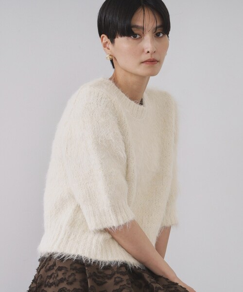 フェザーヤーンのボリューム感と、ハーフスリーブのバランスがポイント。素材感が目を引くプルオーバーニット【デザイン】・ふわふわとした素材感を活かした、シンプルなハーフスリーブニット。・肘にかかるくらいの袖丈で、秋口に一枚で着るのはもちろん、ジャケットなどのインナーにもオススメです。・シンプルなクルーネックと、ジャストな着丈でパンツ、スカートなどボトムスを選ばず合わせていただけます。【素材】・フェザーヤーンと、ふんわりとした風合いが特徴のロービング糸のボリューム感のある素材を使用。・マシンウォッシャブル、アンチピリングでお手入れも簡単です。※照明の関係により、実際よりも色味が違って見える場合があります。また、パソコン・スマートフォンなどの環境により、若干製品と画像のカラーが異なる場合もございます。モデル情報:身長165cm B72 W57 H84 着用サイズ:38(M)店舗へのお問い合わせ商品番号:637-14022●製品寸法:38(M):着丈42cm B88cm 袖丈29cm 肩幅33cm40(L):着丈43cm B92cm 袖丈29cm 肩幅35cm42(LL):着丈44cm B96cm 袖丈29cm 肩幅37cm備考: