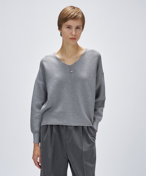 【デザイン】 ・微細なラメのきらめきが上品なガーター編みニット。 ・程よくゆとりのあるシルエットで身体のラインを拾い過ぎず、リラックス感のある着心地を実現。 ・Vネックのすっきりとしたシルエットが華奢見え効果も◎ ・肩の落ちたデザインで、女性らしいやわらかさと抜け感を演出してくれます。 【素材】 ・程よい厚みのドライタッチな快適な着心地。 ・微細なラメが上品カジュアルな印象。 【着こなしポイント】 ・スカートにもパンツにも好相性で、オンオフ問わず様々なシーンで活躍します。 ・一枚はもちろん、トレンドのシャツレイヤードもおすすめです。 モデル身長:173cm ーーーーーーーーーーーーーーーーーー 気になるアイテムはお気に入り登録がおすすめ! お気に入り登録で、再入荷通知やお値下げ情報をお知らせ。 お得な情報をいち早くお届けいたします! アイテムページにある、ハートマークをクリックして追加できます。 ーーーーーーーーーーーーーーーーーー ※照明の関係により、実際よりも色味が違って見える場合があります。また、パソコン・スマートフォンなどの環境により、若干製品と画像のカラーが異なる場合もございます。 店舗へのお問い合わせ商品番号:R91-14419 ●製品寸法: 00(XS):着丈56cm B108cm 袖丈42cm 肩幅38cm 02(M):着丈58cm B112cm 袖丈43cm 肩幅39cm 備考: