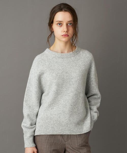 【大人気のカシミヤブレンド素材にクルーネックが仲間入り!暖かくて軽い!】 ●定番で大人気のファインラムズウールにカシミヤをブレンドした編地にNEWアイテムが登場 ●ゆったりとしたシルエットで様々なスタイリングを楽しめます ●ホールガーメント(R)なので、シルエットに立体感があって着心地もとても良いです。 ●とにかくとても軽くて暖かいのがポイント!ヘビーローテーションで活躍する事間違いなし。 ●こだわり とにかく軽くて柔らかくて暖かい編地がこだわり! 編立はホールガーメント(R)編み。 ホールガーメント(R)とは、「無縫製」という意味で、縫い目ができない編み方の事を言います。 縫い目がないためごわつきがなく、伸縮性があり着心地がとても良いのが特徴です。 更に立体感があり美しいシルエットに。 ボクシーシルエットでゆったりとしており、シャツやブラウス等をインにも着やすい。 前後丈差があり、脇にスリットが入っているので、抜け感がありスタイリングしやすいです。 ●素材 オーストラリア産メリノ種のファインラムズウールにカシミヤをブレンドした原毛を紡毛紡績にて紡績しています。 ※ファインラムズウールとは、メリノ種の仔羊から採取される羊毛の中でも、特に生後6ヶ月未満の柔らかい毛のことをいいます。 ラムズウールは、通常のウールよりも繊維が細く滑らかで光沢があるのが特徴で、保温性が高く、軽くて柔らかさがあります。 また、縮絨加工を入れているので、スポンディッシュな風合いに仕上がっており、ふわりとした表面感もポイント。 糸自体も軽くて暖かさがありますが、更に紡績や縮絨など加工により非常に暖かいニットに仕上がっています。 真冬まで着られるニットです! ※照明の関係により、実際よりも色味が違って見える場合があります。また、パソコン・スマートフォンなどの環境により、若干製品と画像のカラーが異なる場合もございます。 店舗へのお問い合わせ商品番号:085-14012 ●製品寸法: 34(SS):着丈前53cm 着丈後58cm B104cm 裄丈75cm 36(S):着丈前54cm 着丈後60cm B107cm 裄丈77cm 38(M):着丈前56cm 着丈後61cm B110cm 裄丈78cm 備考: