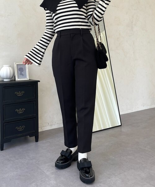 美脚見え!スリムシルエットのテーパードパンツ! ●スリムシルエットで脚をキレイに見せてくれます! ●ハイウエストで履けるので脚長効果に ●テーパードの形がカジュアル・キレイめに着こなせます! ●さらにバックウエストゴム仕様で楽な履き心地 ●ロック機能付きファスナーを使用 (ロック機能とは、引き手部分を持ち上げるとロックが外れ、ファスナーを開閉できる機能です。 引き手部分を下向きに下げるとロックがかかります。) -------------------------------------------------------------- 生地の厚さ:やや薄手 伸縮性:ややあり 透け感:なし 裏地:なし 洗濯方法:ご自宅で手洗い可 -------------------------------------------------------------- ※商品のお取り扱いに関しましては、商品に付属の アテンションカード、洗濯ネームをご覧ください。 ※撮影場所やお使いのモニター環境により若干お色味が 異なる場合がございます。 特にロケの撮影では明るく見える傾向にございます。 ※サイト上ではフリーサイズの表記ですが、商品タグには Mサイズと表記されている場合がございます。 その場合、ワンサイズでのご用意となりますのでサイズミス などではございません。詳しいサイズはサイズスペックを ご確認いただきますようお願い致します。 ※サイト上でのカラー名とお届けした商品に記載されている カラー名が異なる場合がございますので予めご了承ください。 <返品・キャンセルについて> ・着用・洗濯後の返品は致しかねます。 ・商品到着後、着用前に商品を確認して頂きますようお願い致します。
