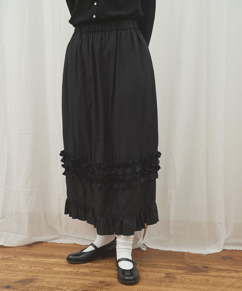 マットなつやと程よい厚みのCottonCupra twill。ドットはオフホワイトにダークネイビーのドットをプリントしています。スカートはタイト過ぎずフレア過ぎないシルエットのこだわりの1枚。裏地を付けず、重ね着や季節に合わせて調節して着られる様にしました。※両脇にポケットあり。カラー展開:ブラック、ドット【素材の特性、お取り扱いの注意】この製品は、着用や洗濯、クリーニングなどにより過度な摩擦を受けますと、変色、色ムラまたは毛羽立ちによる白化が生じることがあります。素材の特性上、ある程度避けられないことで、出来るだけ摩擦を加えず、デリケートにお取扱い下さい。また濡れた場合は早めに乾いたタオル等で、こすらない様におさえて湿気を取って下さい。水じみができやすいので、着用にはご注意下さい。この製品は、自然なしわや風合いを出す為にワッシャー加工をしています。アイロンやスチームをかけることによってこの風合いが消えてしまいます。これらを維持する為に、アイロンはできる限り避け、縫い代を浮かしスチームで軽く押える程度の仕上げにして下さい。 製品洗い この製品は独特の風合いをだす為、製品洗いをしています。1枚ごとに、風合い、色の出方、サイズ等、微妙に違いますが、他の製品では味わえない雰囲気をお楽しみ下さい。この製品を洗濯する際には多少縮む場合がありますので、洗濯後、形を整えてから日陰で干して下さい。タンブラー乾燥はお避け下さい。着用の際の摩擦や雨、汗等により、他の衣類に移染する恐れがありますので充分注意して下さい。大変デリケートな生地の為、乱暴に扱いますと、破損する可能性があるので、着用中、着脱時には十分御注意下さい。fig London(フィグロンドン) CONCEPT English vintage & country inspired natural look joy of slow life relax & cosy playful & curious イギリスのヴィンテージやカントリーを感じさせるナチュラルルック ちょっと間の抜けたゆったりライフの楽しみ リラックスできて着心地が良い 遊びごころがあり好奇心がわく イメージ、カタチ※光の関係で実物の商品の色味とは若干異なる場合がございます。あらかじめご了承ください。※商品はサンプルです。実際の商品と仕様、加工、サイズが若干異なる場合がございます。 ※取り扱いの注意については取り扱い表示をよくご確認の上、着用をお願いいたします。