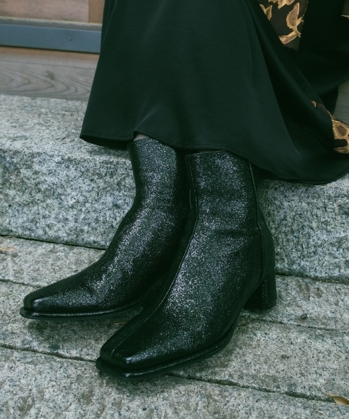 店頭スタッフからの指示も厚い、疲れ知らずのスクエアブーツ90sチャンキーブーツより着想を得たデザインは、デザイン性だけでなく使いやすさと歩きやすさを追求しました。滑らかなフェイクレザーは履いていくうちに足の形に馴染んでいき、スクエアトゥなので足先を締め付けず、太めのヒールで安定感のある履き心地を実現。普段ヒールを履かない方にもおすすめな一品です。奥行きをもたらすクラック加工は、光の角度で自由に煌めき、スタイリングにアクセントをプラスしてくれます。SIZES 足幅:7.4cm 足囲:21.3cm 筒丈:19.7cm 履き口周り:26cm ヒール:5.5cmM 足幅:7.6cm 足囲:22cm 筒丈:20cm 履き口周り:26.8cm ヒール:5.5cmL 足幅:8cm 足囲:22.7cm 筒丈:20.7cm 履き口周り:27.5cm ヒール:5.5cm◼︎Point・毎年人気のスクエアブーツ。・太めヒールで抜群の安定感。・幅広の方でも履きやすいスクエアトゥ。・着脱しやすいバックファスナー。スタッフレビュースタッフA普段のサイズ:23.5cm足の形:幅広、甲高Mサイズでちょうど良かったです。幅広 / 甲高 でブーツ選びが難しいのですが、このブーツはつま先がスクエアということもあり、楽に着用できます。また、ヒールの太さもしっかりとある為、長時間の着用も問題なく、非常に歩きやすいです。スタッフB普段のサイズ:22.5cm足の形:甲が薄い。足の幅が狭い。着用サイズ:SサイズSサイズを着用して全体的にゆとりのあるサイズ感でした。踵に合わせて、つま先が指2本分空いています。そのまま履くことも可能ですが、よりフィット感を求めるようであればインソールを入れることをおすすめします。スタッフC普段のサイズ:ブーツは24.0cm、サンダルは23.5cm足の形:甲が薄い。足の幅が広い。安定した太めヒール+スクエアトゥで、長時間履いていても疲れ知らずな一足です。スタッフD普段のサイズ:25.0cm(靴によっては25.5cm)足の形:甲の高さは普通。足の幅が広い。外反母趾気味。着用サイズ:Lサイズリアルバイです。最初は幅がぴったりでしたが、履いていけば自然と馴染みます。--------------------------------透け感 :ありなし裏地 :ありなし伸縮性 :ありなし光沢感 :ありなしポケット:ありなし--------------------------------※画像はサンプルを使用しているため実際にお届けする商品と仕様やサイズが異なる場合がございます。※照明の関係により実際よりも色味が違って見える場合があります。またパソコン・スマートフォンなどの環境により、若干製品と画像のカラーが異なる場合もございます。※実際のお色味は商品単品画像をご確認くださいませ。※商品によってはシワが付きやすく、畳み皺や折り皺が強く出る場合がございます。 洗濯表示や品質をご確認の上、アイロンまたはスチームアイロンをかけていただくことを推奨します。ブランド品番:【sahara/サハラ】遠い記憶、遥か異国の土地、文化、伝統。をコンセプトとし、現代に生きる女性に、ノスタルジックなリアルクローズを提案いたします。●商品のお気に入り登録再入荷、残り1点、セールなどの通知を受け取ることが出来ます。●ブランドのお気に入り登録新商品や再入荷、ショップのおすすめトピックスなど、いち早くブランドのお得な情報を受け取ることができます。