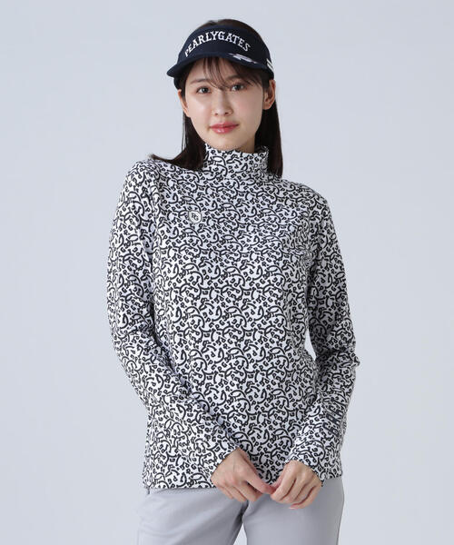 よく見るとエクボがあるニコちゃんで総柄を表現した、NICO総柄綿ベア天竺長袖ハイネックカットソー。高い伸縮性とフィット感が生み出される、ゴルフに最適なソフトタッチな生地を使用。ベア糸を取り入れた天竺編みのストレッチ感の良さで、動きやすく、ストレスフリーな抜群の着心地を体感できます。総柄ながらホワイトベースの着まわし力の高さで、ゴルフからデイリーまで様々なシーンにフィットする一着になっています。PEARLY GATES(パーリーゲイツ)1989年春にスタート。メンズ事業部のスタッフたちが、ゴルフを始めることになった。ところが、自分たちが着たいと思うゴルフウエアがない。「それならば自分たちで作ろう!」という想いから全ては始まりました。以来、「もっと気軽にもっと楽しくゴルフをしよう」というコンセプトのもと、あらゆる枠組みを超えた新しいゴルフウエアとゴルフ本来の素晴らしさを、パーリーゲイツは提案し続けています。