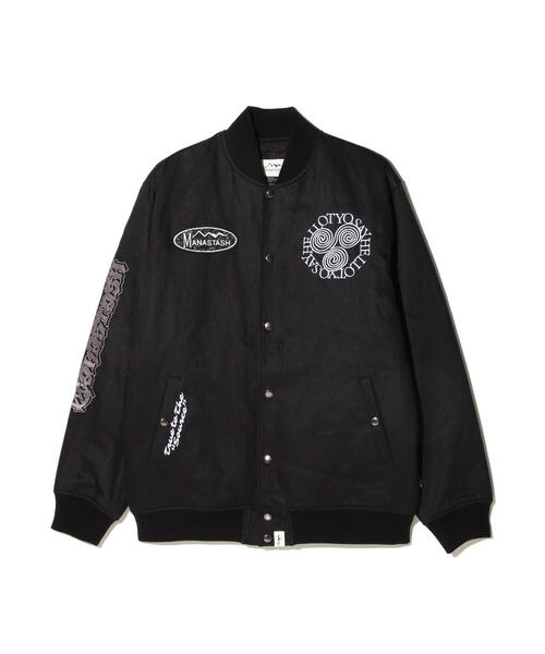 MANASTASH/マナスタッシュ SAYHELLO HEMP VARSITY JACKET※SAYHELLOコラボレーションアイテム・ブランド創業時からのManastashの原点である、オリジナルのヘンプコットンツイルを使用(コットンはオーガニックコットンを使用)・ヘンプは天然の抗菌・消臭作用を持ち、繊維に無数の穴が開いていることから吸湿性、吸汗性に優れており、99.9%ものUVカット効果がある (コットンより50%以上も優れている)ので、屋外での着用にも適している。・MANASTASHで使い続けているヘンプツイルを、SAYHELLOとのコラボのバーシティージャケットで使った、スペシャルな1枚。・SAYHELLOでお馴染みのグラフィックに、MANASTASHの要素が巧みに入れ込まれ、それらが刺しゅうで入った豪華な仕様。 その中でも背中のグラフィックは、サガラ刺しゅうを使ったスペシャル仕様。【SAYHELLO/セイハロー】東京を拠点とするグラフィックデザインからアパレルまで、幅広いクリエイティブプロジェクトを手掛ける多分野にわたるデザインエージェンシーとして2012年に設立されました。大胆なグラフィックと共感できる表現で知られ、東京でカルト的な人気を博しています。【MANASTASH/マナスタッシュ】1993年に米国シアトルで設立された<MANASTASH>。ブランド名の由来となる北アメリカ大陸の西海岸沿いを南北に走るカスケード山脈から駆け落ちるマナスタッシュ山高原は、スキーやトレッキング、マウンテンバイク、ラフティング、カヤックなど多様なアウトドアスポーツが楽しめることで有名です。創業時よりヘンプやリサイクルフリースなど環境に優しい素材を採用して最高のアイテムを作ることを理念に掲げ、旧き良きアメリカのプロダクトをデザインベースにしたライフスタイルブランドは、ファッションとカルチャーをクロスオーバーさせた新しいスタイルを提案します。