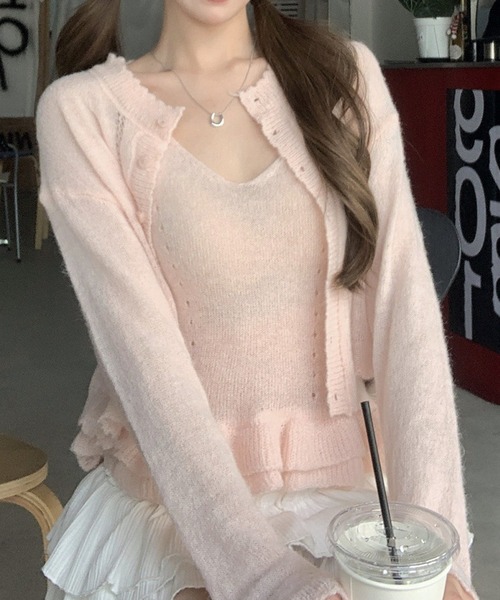 ・カーディガン&キャミソールがセットになったお得なアイテム ・キャミソールは裾フリルデザインで、トレンドライク ・セット着用はもちろん、別々で他アイテムと合わせるのも◯ coordinate ・シンプルなデニム合わせでカジュアルに ・フリルのレイヤードスカートを合わせてさらにガーリーさをプラス! ※モニター・環境等により実際の商品と多少色味が異なって表示される場合がございます。あらかじめご了承ください。 ◆商品のお気に入り登録 完売カラーの再入荷通知や、ラスト1点、セールの通知をお知らせいたします。 ◆ブランドお気に入り登録 新商品や再入荷など、いち早くブランドの情報を受け取ることができます。 CZ_0005