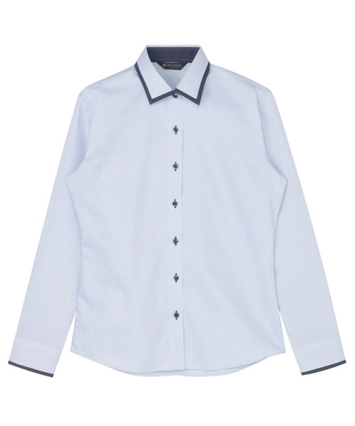 衿羽根・袖を別布と同柄でぐるりと 一周縁取るエレガンスな仕様です。 顔回りを華やかに、袖元まで 人目を惹くお洒落なデザインは 大人の艶やかなシャツスタイルに。 -透け防止レディース- 透け感軽減+UVカット生地でどんな 季節もお洒落な着こなしが楽しめます。 形態安定加工と綿×ポリエステル 素材で、クリーニング要らずの 自宅で取扱い楽ちんのワイシャツ。 ■仕様 カフリンクス使用可能 アジャストボタン 前身頃ダーツなし・後身頃ダーツ入り 台衿内側・カフス/カフス裏側・衿羽根外周:別布仕様 衿・カフス:デザインあり 前立:裏前立仕様 ※別布を含む濃色生地は色落ち・移染が 発生する場合があるため、お洗濯時は 衣類の組合わせにご注意ください。 【BRICK HOUSE by Tokyo Shirts / ブリックハウス バイ トウキョウシャツ】業界トップ水準を誇るノーアイロンの形態安定加工は自宅で洗濯可能でお手入れ簡単!高度な縫製技術を用いた高付加価値シャツでありながら選ぶことを気軽に楽しめます。ベーシックから多様なデザインまで幅広いバリエーションで豊富なサイズ展開で、ディテールの隅々にまで織り込んで一枚一枚丁寧に仕立てられたシャツです。