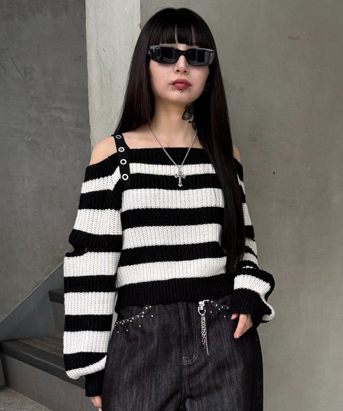 【PUNKコーデにおすすめなボーダーニット】ストラップベルトがアクセントのオフショルダーニットはブラック系ボトムスとの相性抜群◎PUNKなボーダーアイテムはTWINSコーデにもぴったり。■detail・長袖・オフショルダー・ニット・ボーダー・ベルトストラップ【商品画像について】※画像はサンプルです。実際の商品と仕様、加工、サイズ、カラーが若干異なる場合がございます。また、撮影場所や照明の照射・角度、お使いのモニター環境によりお色味が異なる場合がございます。予めご了承ください。《お気に入り登録》・「商品のお気に入り登録」で再入荷通知や、ラスト1点の通知、セール通知も受け取ることができます。・「ブランドのお気に入り登録」で新商品や再入荷など、いち早くブランドのお得な情報を受け取ることができます。【Figments/フィグメンツ】ファッション、音楽、カルチャー。時代とともに変化を楽しむ者たちに向けた、Realityを覆し、常識を壊すユニセックスファッションブランド。