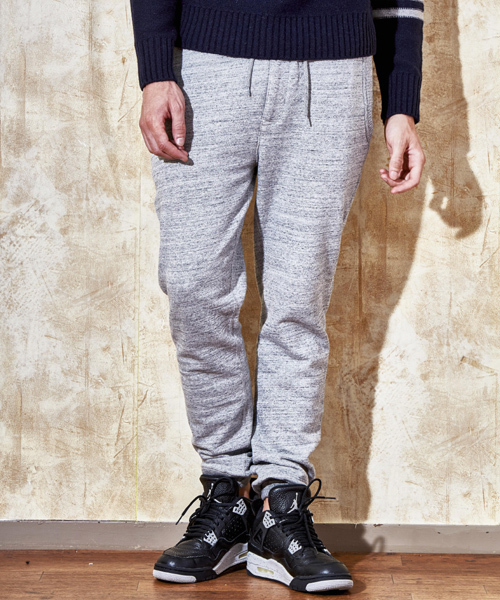 185cm C96-W74-H90 靴28.0cmのモデルが3サイズを着用 昨年ご好評頂いたスウェットパンツのリリースになります。 生地はTOP染めの16/-AB x 32/- x 10/-吊り裏毛を使用。 吊り編み機で糸にストレスをかけずにゆっくりと丁寧に編み上げられた生地は空気と一緒に編み込むことで独特のボリューム感が生まれ着込むほどに肌に馴染む快適な着心地となります。 同素材で展開しているフルジップパーカーとのセットアップの着こなしや単品のセパレートでのタウン使用でも十分使える一品です。
