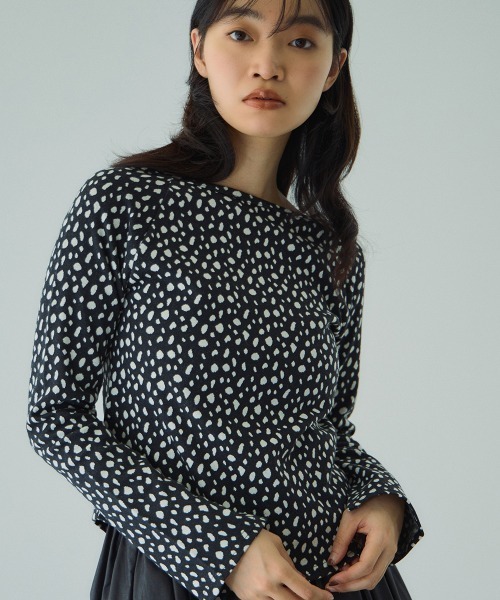 ●POINT 2000~2010年頃にかけて時代の象徴的なアイコンだった「アニマル柄」アイテムをデザインやサイズ感を今の気分でアップデートしました。 輪郭が丸みを帯びたレオパード柄(ベージュ系、ブラウン系)と変形ドット柄のように見えるダルメシアン柄(グレー系、ブラック系)の4色展開。 デコルテがストレートに見えてくるミニマルな印象のボートネックデザインで、タックインでもアウトでもバランスの取りやすいラウンドヘムに。 袖先にはスリットアレンジを効かせて抜け感をプラスしています。 大人の方には懐かしくも新鮮さ感じられるアイテムは、世代を超えてシェアしてするものおすすめです。 ---------------------------------- 透け感:なし 厚さ: 普通 伸縮性:あり 裏地: なし ポケット: なし ---------------------------------- ---------------------------------------------------------------- 洗濯方法 家庭洗濯:液温は40℃を限度とし、手洗いができる。 自然乾燥:日蔭の吊り干しがよい。 アイロン:底面温度120℃を限度としてアイロン仕上げができる。 ドライクリーニング:石油系溶剤による弱いドライクリーニングができる。 ---------------------------------------------------------------- ■モデル身長 165cm 着用サイズ M ※画像の商品はサンプルとなりますので実際の商品と仕様、加工、サイズが若干異なる場合がございます。 ※お客様のモニター環境により実際のお色と多少異なる場合がございます。 ※撮影状況や光の当たり具合により、色合いが異なって見える場合がございます。 ---------------------------------- ▼商品のお気に入り登録 ハートマークをクリックし、お好きなカラーを選んでお気に入りに登録 完売カラーの再入荷通知や、ラスト1点の通知、セールの通知も受け取ることができます。 ▼ブランドのお気に入り登録 新商品や再入荷等、いち早くブランドのお得な情報を受け取ることができます。 ----------------------------------