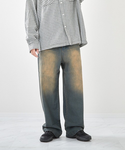 リラックス感あふれるワイドシルエットのデニムパンツ。たっぷりとしたボリュームながらも落ち感のある生地を使用し、動くたびに自然なドレープを演出します。ウエスト周りはゆとりを持たせつつ、裾にかけてストンと落ちるラインがスタイリングをすっきりと見せてくれます。カジュアルからストリートまで幅広いコーディネートにマッチ。チェックシャツやスウェットと合わせればトレンド感のあるリラックススタイルに、ジャケットを羽織れば大人の抜け感をプラスできます。ユニセックスで楽しめる万能アイテムとして、シーズンレスに活躍間違いなしの一本です。