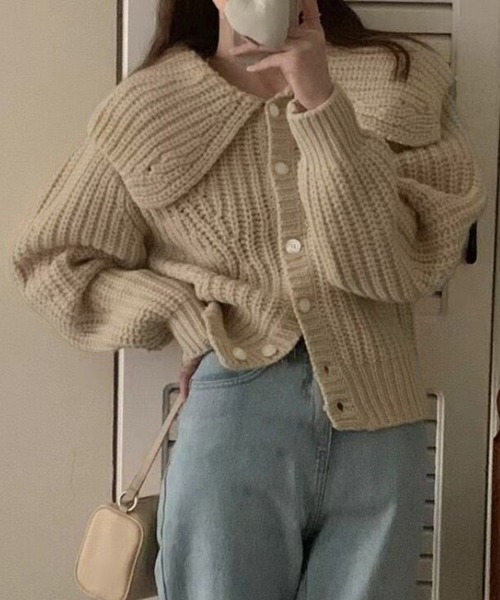 大きめカラーがポイント ざっくり感が可愛いリブニットカーディガン 《ビッグカラーリブニットカーディガン》 存在感のあるビッグカラーとざっくり編みが特徴のリブニットカーディガン ゆるっとしたシルエットで、トレンド感のあるレイヤードコーデが楽しめます ■point ・大きめ襟デザインで小顔効果◎ ・ざっくり編みの抜け感ある雰囲気 ・オーバーサイズで体型カバーも◎ ・羽織るだけで韓国風スタイルに ■detail 厚みのあるリブニット素材 フロントボタン仕様 ドロップショルダーでリラックス感 存在感ある大きめ襟デザイン ■coordinate ・デニムと合わせてカジュアルに ・プリーツスカートでガーリーライクに ・ワンピースの羽織りにしてフェミニンに ・キャップやスニーカーで韓国ストリート風 LF-0911 …………………………………… 【lulufa】 Lulu:「Luxe(豪華さ)」+「ループ(流行が巡る)」+Fa(ファ):「Fashion(ファッション)」 「Lulufa(ルルファ) = 自由な発想で楽しむ洗練されたファッション」を意味します。【lulufaの新着情報について】 ▼商品のお気に入り登録 完売カラーの再入荷通知や、ラスト1点の通知、セールの通知も受け取ることができます。 ▼ブランドのお気に入り登録 新商品や再入荷等、いち早く""""lulufa""""のお得な情報を受け取ることができます。…………………………………… ※こちらの商品の画像はサンプルを使用しているため、一部製品と仕様が異なる場合がございます。 ご覧のモニター環境や撮影環境により実際の商品と多少色味が異なって見える場合がございます。 この点をご了承の上、お買い求めください。ご理解の程よろしくお願いいたします。 ""