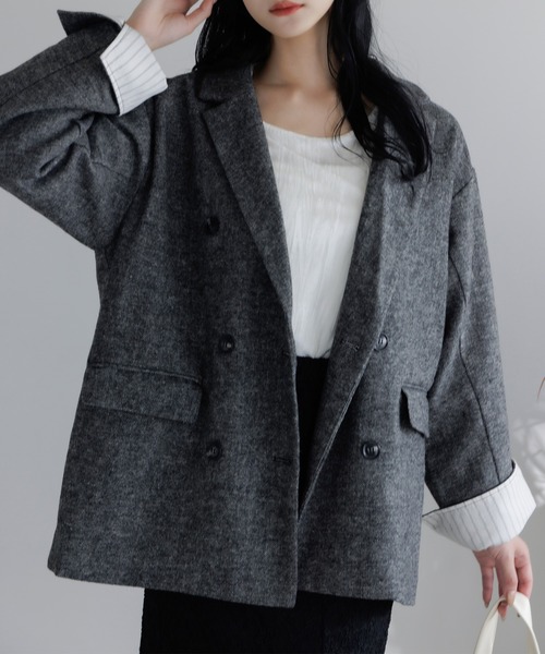 ■Point. シンプルで万能に使えるテーラードジャケット。 絶妙なアースカラーでどんなコーデにも合わせやすく、羽織るだけでこなれた印象に。 ツイード生地でも重量は軽めの設定。どんなシーンでもサラッと着ていただけます。 袖の折り返しはストライプになっているので、 コーディネートに合わせてアクセントとしても使えます◎ 袖は少し長めのデザインなので、折っても短くなりません。 ……………………………………………………… 透け感:なし 厚さ:やや厚め 伸縮性:なし 裏地:あり シワ:つきにくい ……………………………………………………… 【ZOZOTOWNでお買い物を上手にお楽しみいただく2つのPOINT】 ▼購入ボタン横の(ハートマーク)をクリック! 完売カラーの再入荷通知や、ラスト1点の通知、セールの通知も受け取ることができます。 (クリックで商品のお気に入り登録) ▼ショップのトップページにある♡(ハートマーク)「お気に入りショップに追加」をクリック! 新商品や再入荷等、いち早くブランドのお得な情報を受け取ることができます。 (ブランドのお気に入り登録) ※他のキャンペーンにより、期間中に価格が変動する場合があります。 ※セールは予告なく終了させていただく場合もあります。 ※モデル着用商品の画像はサンプルのため、実際の製品とは仕様や加工、サイズ等が若干異なる場合がございます。 ※商品の色味は、撮影場所や光のあたり具合・お客様のお使いのPCのモニター環境などにより色味が違って見える場合がございます。予めご了承の上ご注文下さい。 ……………………………………………………… レディース ファッション コート ジャケット アウター 上着 羽織 あたたかい 防寒 おしゃれ スタイリッシュ かわいい きれいめ カジュアル デイリー 秋 冬