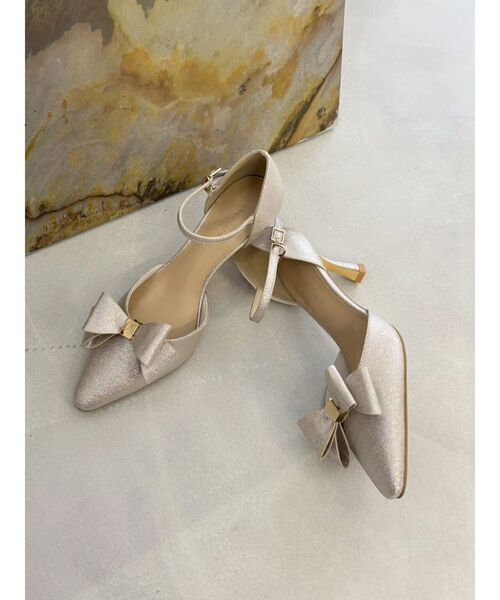 上品なラメ混の素材を使用した華やかなリボンパンプス。今年らしい大きなリボンパーツでつま先を彩ります。 取り外し可能なので、シーンに合わせて選べます。 ヒールの形状も程よく華奢で安定感もあります。 ▼スタイリング ドレスシーンに使えるように華やかにデザインされていますが、デニムやベーシックパンツの足元など、 シンプルなボトムに合わせてデイリーにも使えるアイテムです。 ~~ZOZOTOWNでお買い物を楽しむ便利機能~~ ♡商品のお気に入り登録 完売カラーの再入荷時、ラスト1点の時、セール開始時に通知でお知らせします。 予約アイテムが入荷して通常販売になった時もお知らせしてくれます! ♡ブランドのお気に入り登録 新商品や再入荷、セールやクーポン情報など、 ブランドのお得な情報をいち早く受け取ることができます! ※実際にお届けする商品と仕様やサイズが異なる場合がございます。 また、生産の都合上、お届け時期が前後する場合がございます。