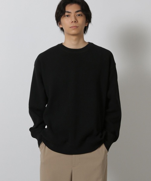 シンプルデザインのニット。程よいゆとりがあるシルエットですっきりとしながらもリラックスして着られる1枚です。【素材】まるでスウェットのようなニット。肌あたりが柔らかくチクチクしにくい素材を使用。滑らかで着心地も〇【スタイリング】トラウザーやチノパンなどキレイ目パンツが相性抜群。シンプルなデザインなので合わせるアイテム選ばずスタイリングできます。