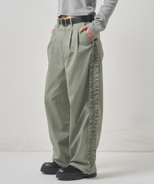 デザイン・サイドにフリンジを施した、可愛らしさのあるチノパンツ。・メンズライク感のあるチノパンツですが、フリンジが付いてることによって、女性らしい印象に。・ストレートシルエットなので、足も綺麗に見せてくれます。■その他※撮影環境やご覧のモニター環境によって、実物と多少色味が異なって見える場合がございます。※サイト上のカラー名と、お届け商品に記載されているカラー名が異なる場合がございます。《商品のお気に入り登録》《ブランド登録》がオススメ!■商品のお気に入り登録ハートマークをクリックしてお気に入りに登録。完売カラーの再入荷通知や、ラスト1点の通知、セールやクーポン通知も受け取ることができます。■ブランドのお気に入り登録新商品や再入荷等、いち早くブランドのお得な情報を受け取ることができます。【マルチサイズとは】豊富なサイズ展開のため、「骨格ストレート/骨格ウェーブ/骨格ナチュラル」など様々な体型の方も、自分に合った1枚が見つかる新しい洋服の買い方です。「低身長~高身長」「やせ型~ぽっちゃり」など小さいサイズから大きいサイズまで、最大56サイズご用意しています。定番アイテムから、ビッグシルエットなどのトレンドアイテムまで幅広く展開中!※マルチサイズは、ZOZOTOWNのみでのお取り扱いになります。※サンプル品で撮影しているため、ボタンやファスナーなど一部の仕様が若干異なる場合がございます。【注意事項】この商品はご注文を受けてから生産を行う受注生産商品のため、発送までにお時間をいただきます。カート投入後の画面にて発送日の目安が表示されますのでご確認ください。