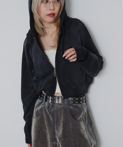 ヴィンテージライクな表情に、旬のバランス■デザインスプレーブリーチ加工が施された、ショート丈のフーディー。フード付きのカジュアルなアイテムでありながら、クロップド丈にすることで、ストリートにもモードにも着こなせる洗練されたデザインです。■コーディネートカジュアルにデニムやTシャツと合わせるのはもちろん、スカートやスラックスなどきれいめアイテムと合わせた抜け感のあるコーディネートもおすすめ。ボリュームのあるボトムスやワンピースともバランス良く着用できます。■ディテールフロントにはダブルジップのファスナーを採用し、着こなしの幅を広げます。■サイズコートやジャケットの中にレイヤードしやすいよう、コンパクトなサイズ感で設計されています。■素材スプレーブリーチ加工を施した裏毛素材を使用。■ケア方法手洗い可 (詳細は商品についている品質表示ラベルをご覧ください)中性洗剤を使用し、裏返してネットに入れて洗ってください。干す際も裏返して干すようにしてください。※他の洗濯ものとの同時洗濯はお控えください。※白いものへの移染の可能性があるため、十分にご注意ください。【GREY】Model:H168 B81 W60 H89 Size:ONE SIZE【CHARCOAL】BEAMS STAFF:H164 Size:ONE SIZE※光の当たり具合やパソコンなどの閲覧環境によって実際の色味と異なって見える場合がございます。予めご了承ください。※商品の色味は商品単体で撮影した画像をご参照ください。