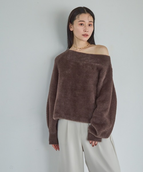 ーーーストレスフリーな肌触りで暖かい。抜け感のあるウォームニットーーー【デザインと特徴】毎シーズン定評のあるウォームニット編地を使用した、オフショルにもなるボートネックプルオーバー衿のリブを太くしているデザインがオトナ感を演出。袖口パフの膨らみがシャギーの素材と相性が良く、着るだけで着映える1着です。【素材特徴】表面は、非ウールのフェザー素材、裏面は保温効果のある肌触りの良い素材を使用して接結編みしました。肌当たりも優しく、暖かさは感じられるいい所取りの編地です。【スタイリング】スカート合わせでレディスタイルやワイドパンツ合わせでオトナカジュアルコーデも◎【洗濯可否】洗濯機でのお手入れが可能です。---------------------------------------------------------《インフォメーション》◆商品のお気に入り登録♡をクリックで気になるアイテムをお気に入り登録していただくと、以下の通知を受け取ることができます。・入荷・再入荷・ラスト一点・セール対象時◆ブランドのお気に入り登録新商品や再入荷、セール、クーポン配布などのお得な情報を受け取ることができますので、是非ご登録ください♪公式Instagram >>> 【@apartbylowrys 】おすすめアイテムや新作情報、" ショップニュース "を更新中!ぜひフォローしてみてくださいね^^