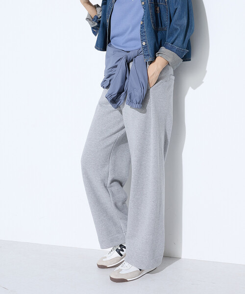 《デザイン》ダーツ利用のポケットをあえて前よりにすることで、細見え効果が期待できます。脇に接ぎが無く、落ち感のある美しいシルエットが魅力です。ウエストゴムで楽な着心地ですし、紐でサイズ調節が可能です。同素材のプルオーバー(商品番号:21-03EM04-205)とセットアップでもお楽しみください。リラックスした履き心地ながら、スラックの様なポケットやステッチにすることで、きれいめなスタイリングにもマッチします。《素材》表・中に30/1、裏に16/2の双糸を使用したベーシックな肉厚裏毛素材です。表糸を度詰めにし、中糸にシルバーラメを混紡しています。上品な光沢感が大人な雰囲気です。《セットアップ》同素材のアイテム(商品番号:21-03EM04-205)セットアップとしてお召しいただけます。※在庫がない場合もございますので、予めご了承くださいませ。お手入れ方法:手洗い可