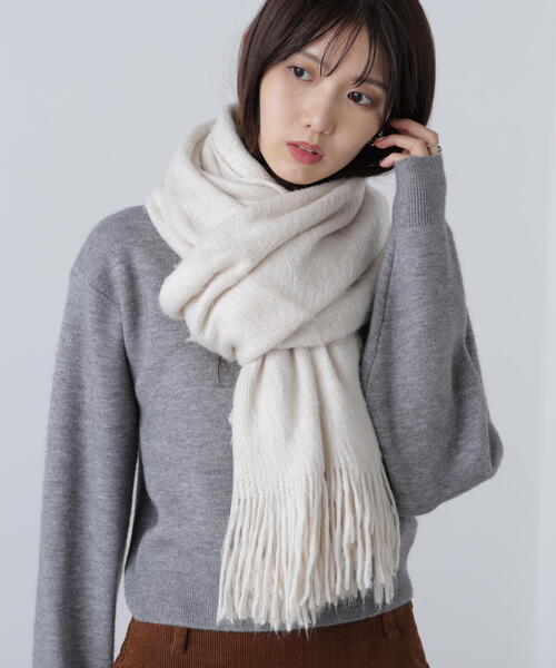 ふんわりとした起毛感が魅力のラッセルストール。柔らかい肌当たりとあたたかな付け心地で寒い季節に活躍してくれます。無地のストールはどんなスタイリングにも取り入れやすくてお勧めです。※モデルの着用画像の場合、光の当たり具合により、実際の色味と異なって見えることがございます。色味は、商品単体の画像をご参照ください。