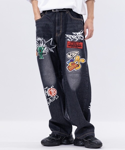 【デザイン・シルエット】 ボディ全体にワッペン、グラフィック文字が散りばめられたデニムパンツ。 ワッペン、文字プリントが存在感抜群のデザイン。 ウエストには紐が入っており、サイズ調節が可能に。 裾に向かってカーブしているトレンドのシルエット。 個性的なデザインなため、コーデの主役になること間違いなしのアイテムです。 【コーディネート】 カジュアルからアメカジ・ストリート・古着ライクにも着こなせる万能アイテム。クルーネックTシャツやVネック、リンガーT、ラグランT、ピグメントTなどのTシャツとオンブレチェックシャツ、ネルシャツ、ブロードシャツ、ストライプシャツをレイヤードさせたコーディネートも旬なスタイリングに◎。小物に巾着バッグ、リュック、ニット帽、ワッチ、バケットハット、キャップなど合わせたり、ネックレスやブレスレット、リング、時計などでアクセントを加えるのも◎。足元にお好みのスニーカーなどどんな靴とも相性抜群です。 ※パンツ基準になります。 【厚み】薄い○○●○○厚い 【柔かさ】硬い○○●○○柔かい 【伸縮性】なし○●○○○あり 【透け感】なし●○○○○あり 【ウエスト】細い○○●○○太い 【太さ】細い○○○●○太い 【ユニセックス】 メンズ、レディース問わずユニセックスで使える商品です。 カップルや夫婦でシェアして使えるのも嬉しいポイント。 【カラー展開】 ブラック ブルー ▼JOHN'S CLOSET (ジョンズクローゼット)▼ アウトドア、スポーツ、ミュージック、アート、多彩な趣味を彩るファッション。 そのすべてのファッションがこのクローゼットに… その日、その時の気分で着れるようなファッションアイテムをご用意いたします。 No fashion, No life 〔お買い物をお楽しみいただく為に〕 ■商品のお気に入り登録 完売カラーの再入荷、セール情報、ラスト1点通知を受けとることができます。 ■ブランドお気に入り登録 新商品の入荷や、再入荷などお得な情報を受け取ることができます。