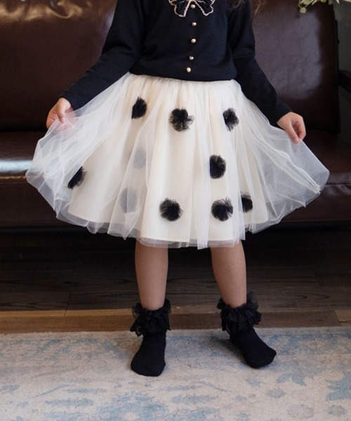 ■商品説明ふんわり広がるチュールスカートが登場!配色が目を引く花の形をしたレースと、ふわっと広がるシルエットで、他にはないキュートで遊び心満載なデザイン♪2色展開で、ブラックとホワイトのシンプルながらも華やかなカラーバリエーション!特別なお出かけや、日常のコーディネートにも大活躍するアイテムです。女の子らしさを引き立て、おしゃれでかわいいふわっとしたボリューム感で、どんなシーンでも華やかに演出します!■素材表側:ナイロン100%裏側:ポリエステル84% 綿16%■モデルサイズ身長107.5cm 体重16.5kg■モデルの着用サイズ110cm
