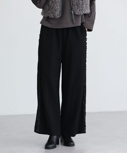 季節感のあるシックな雰囲気でデイリーに合わせていただけるデザインパンツ。サイドラインに施したグログランリボンのミニフリルがこなれ感あるアクセントです。ウエストゴム 仕様とワイドなシルエットで楽な穿き心地なのも嬉しいポイント。秋冬らしいスタイルをお楽しみいただけるおすすめのアイテムです。透け感[なし]生地の厚さ[普通]光沢感[なし]伸縮性[なし]裏地[なし]ポケット[あり]※モデル着用画像は、光の当たり具合で色味が違って見える場合がございます。※お使いのモニター環境によって商品の色味が違って見える場合がございます。●Green Parks (fuuwa / topic / sara)●(グリーン パークス)20以上の人気ブランドを取り扱う、全国に約320店舗展開するアパレルセレクトショップ。ベーシックながらもさりげなくトレンドを取り入れたオリジナルブランドchocol raffine robeも展開。▼ 商品のお気に入り登録がおすすめです ▼商品ページ内のハートマークをクリック。完売時の再入荷や、最後の1点の通知、コーディネート画像がアップされたとき、お得なお値下げの際の通知を受ける事ができます。【お知らせ】ページでも通知が確認できます。
