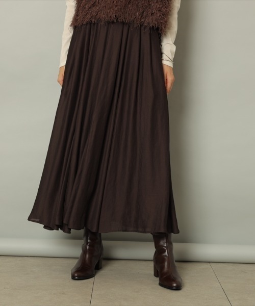 軽やかな素材感で自然な揺らめきを楽しめるエアリースカート。 ふんわりと広がるフレアシルエットで、スタイリングにやわらかい印象を与えます。 ご家庭で簡単にお手入れできるマシンウォッシャブル仕様が魅力。 どんなトップスにも合わせやすく、着回しの幅が広がるアイテムです。