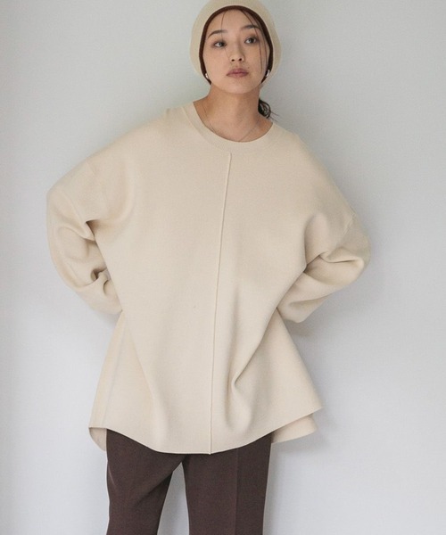 ■素材■滑らかなタッチと程よい厚みで1枚でも着心地の良い素材感です。マシンウォッシャブル可能なのでデイリーに使いやすいです。■デザイン■使いやすいシンプルなデザインだからこそ、ディテールやシルエットにこだわりました。後ろ裾をラウンドヘムにして後ろ姿や横からのシルエットも綺麗見え。前中心と後ろ中心にはタックを入れているので縦長効果でさらにスタイルアップ効果抜群なアイテムです。■スタイリング■シンプルなデザインになっており様々なボトムスでお楽しみいただけます。ゆったりシルエットですが着ぶくれしないのでアウターも気兼ねなく合わせていただけます。.