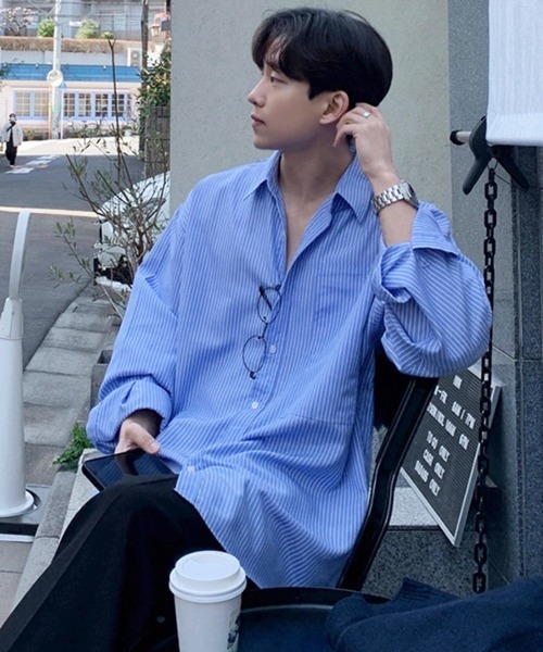 【NOWLE】ルーズフィット ピンストライプ レギュラーシャツ■デザインとシルエット:トレンドを纏うクリーンな一枚このシャツは、定番のストライプ柄をトレンドのルーズフィットに落とし込んだ、クリーンかつモダンなアイテムです。柄には、遠目には無地にも見えるほど繊細なピンストライプを採用し、控えめながら洗練された印象を与えます。着丈、身幅や肩幅にゆとりを持たせたオーバーサイズな設計で、堅苦しさがなく、着るだけで旬なリラックススタイルが完成します。余計な装飾を省いたレギュラーカラーのベーシックなデザインで、幅広いコーディネートに対応します。■素材と着心地:さらっと快適なデイリーウェアさらりとした肌触りの良い生地を使用しており、軽い着心地が特徴です。通気性も良く、春から秋口まで長く活躍するデイリーウェアとして最適です。アイロンの手間を軽減する素材感で、洗濯後のお手入れも簡単。ゆとりのあるルーズフィット設計と相まって、一日中ストレスなく快適に着用いただけます。画像にある通り、胸元にはスマートフォンなどが収まる実用的な内ポケットがさりげなく配置されています。■スタイリング提案:きれいめからカジュアルまでルーズシルエットながらクリーンなストライプ柄のおかげで、きれいめなスタイリングにもマッチします。スラックスやチノパンと合わせれば、品の良い大人のカジュアルスタイルに。また、デニムやカーゴパンツと合わせて、シャツの清潔感を活かしたシンプルストリートスタイルも楽しめます。ボタンを全て閉めてタックインすれば、上品な印象に。前を開けてTシャツの上に羽織るライトアウターとしても活躍し、様々な着こなしの幅を広げます。【NOWLE(ノウル)】now+owlの造語で幸福の鳥owl(フクロウ)をモチーフにしたブランド名"今"と"幸福"を大切にという想いを込めて立ち上げたセレクトブランドです。【NOWLEの新着情報について】▼商品のお気に入り登録完売カラーの再入荷通知や、ラスト1点の通知、セールの通知も受け取ることができます。▼ブランドのお気に入り登録新商品や再入荷等、いち早く"NOWLE"のお得な情報を受け取ることができます。※こちらの商品の画像はサンプルを使用しているため、一部製品と仕様が異なる場合がございます。ご覧のモニター環境や撮影環境により実際の商品と多少色味が異なって見える場合がございます。この点をご了承の上、お買い求めください。ご理解の程よろしくお願いいたします。ルーズフィット, ピンストライプ, ストライプシャツ, オーバーサイズ, ビッグシルエット, レギュラーシャツ, 長袖シャツ, きれいめカジュアル, メンズ, ユニセックス, 青, 白, サックスブルー, シンプル, リラックス , トップスCZ_0008